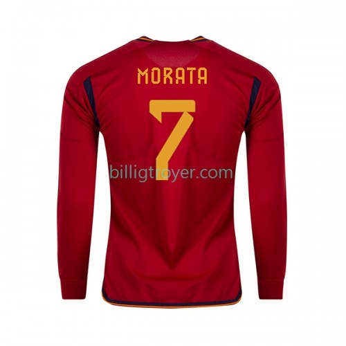 Billige Fotballdrakter Spania MORATA 7 Hjemmedraktsett VM I Fotball 2022 Langermet