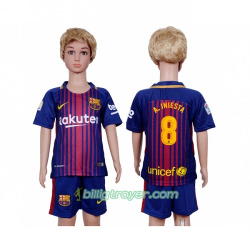 Billige Fotballdrakter FC Barcelona Andrakt Iniesta 8 Barn Hjemmedraktsett 2017/18 Kortermet
