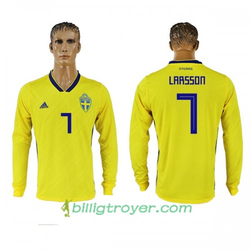 Billige Fotballdrakter Sverige Larsson 7 VM 2018 Hjemmedraktsett Langermet