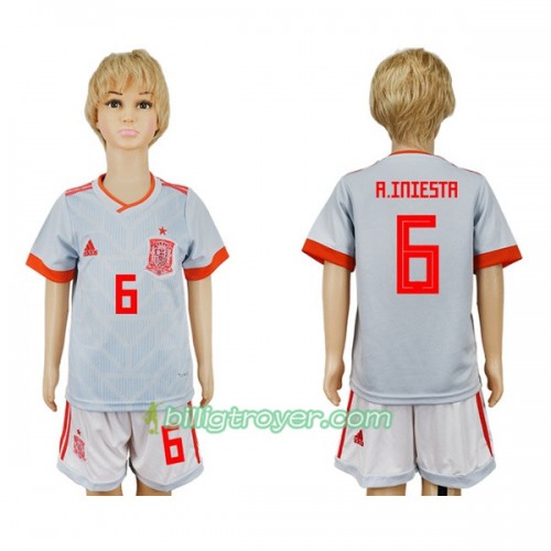 Billige Fotballdrakter Spania A_Iniesta 6 Barn VM 2018 Bortedraktsett