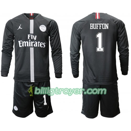Billige Fotballdrakter Paris Saint-Germain BUFFON 1 Jodan Svart Barn Tredjedraktsett 2018/19 Langermet