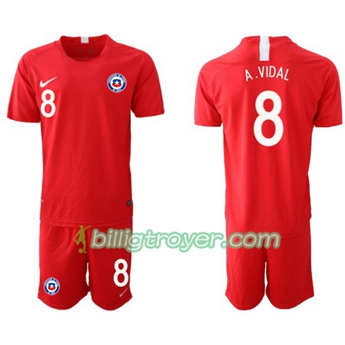 Billige Fotballdrakter Chile A. VIDAL 8 Barn Hjemmedraktsett 2018/19 Kortermet