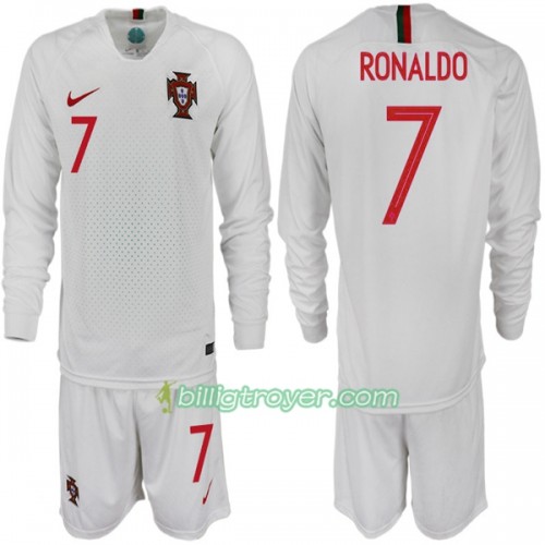 Billige Fotballdrakter Portugal RONALDO 7 Barn VM 2018 Bortedraktsett Langermet