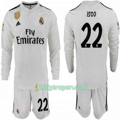 Billige Fotballdrakter Real Madrid ISCO 22 Barn Hjemmedraktsett 2018/19 Langermet