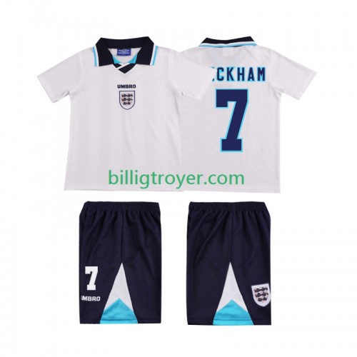 Billige Fotballdrakter England Beckham 7 Barn Retro Hjemmedraktsett 1996 Kortermet